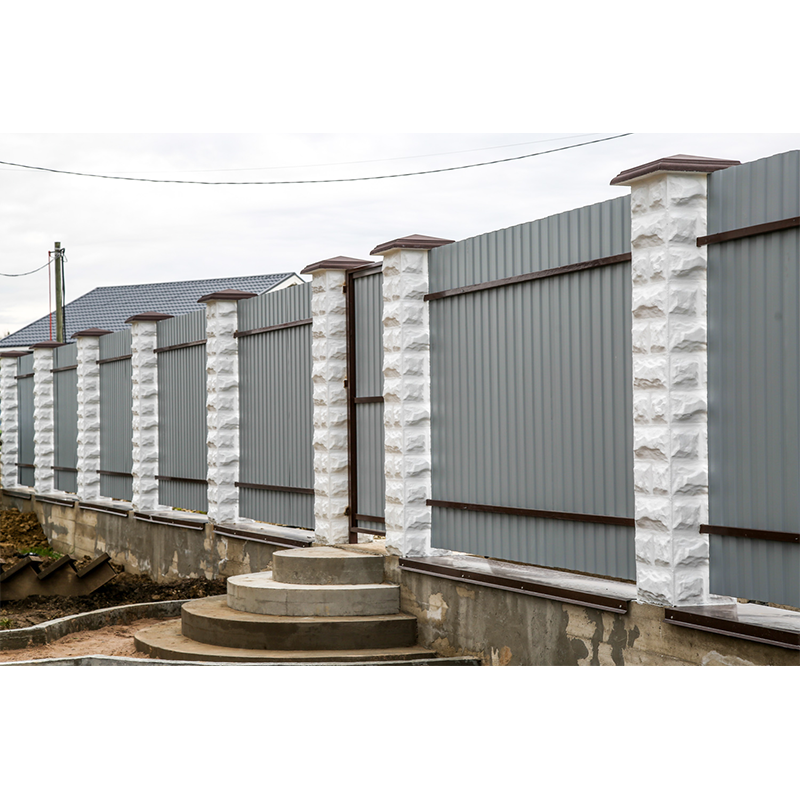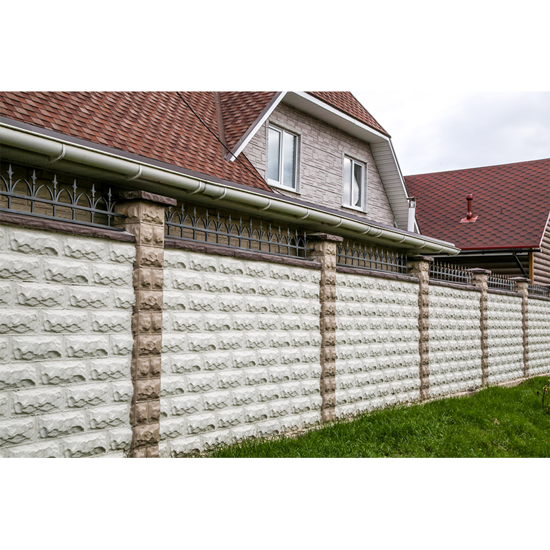 Установка блоков обходится намного дешевле, чем устройство кирпичного забора той же высоты. После монтажа забора блоки окрашиваются фасадной краской по бетону в цвет, который более всего подходит вашему дому.