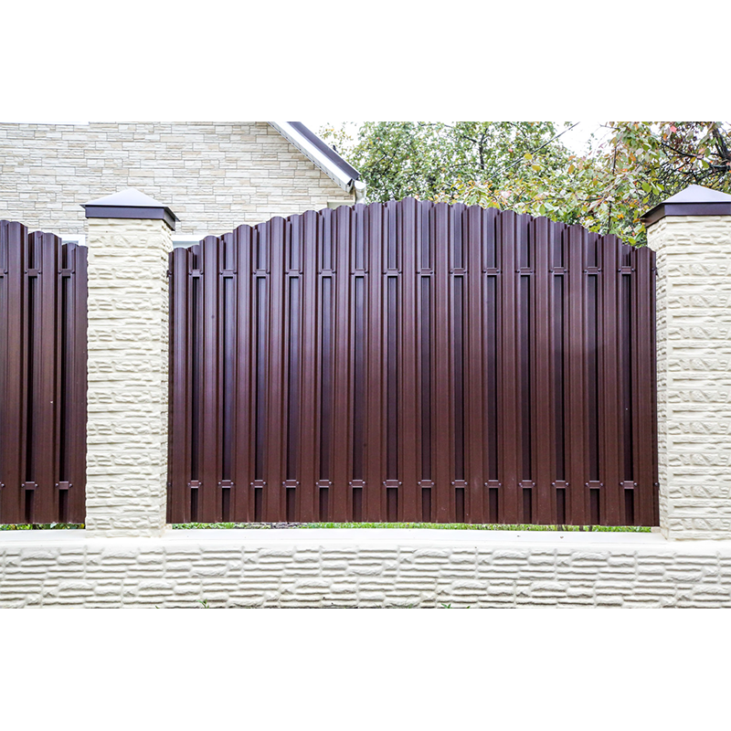 Установка блоков обходится намного дешевле, чем устройство кирпичного забора той же высоты. После монтажа забора блоки окрашиваются фасадной краской по бетону в цвет, который более всего подходит вашему дому.