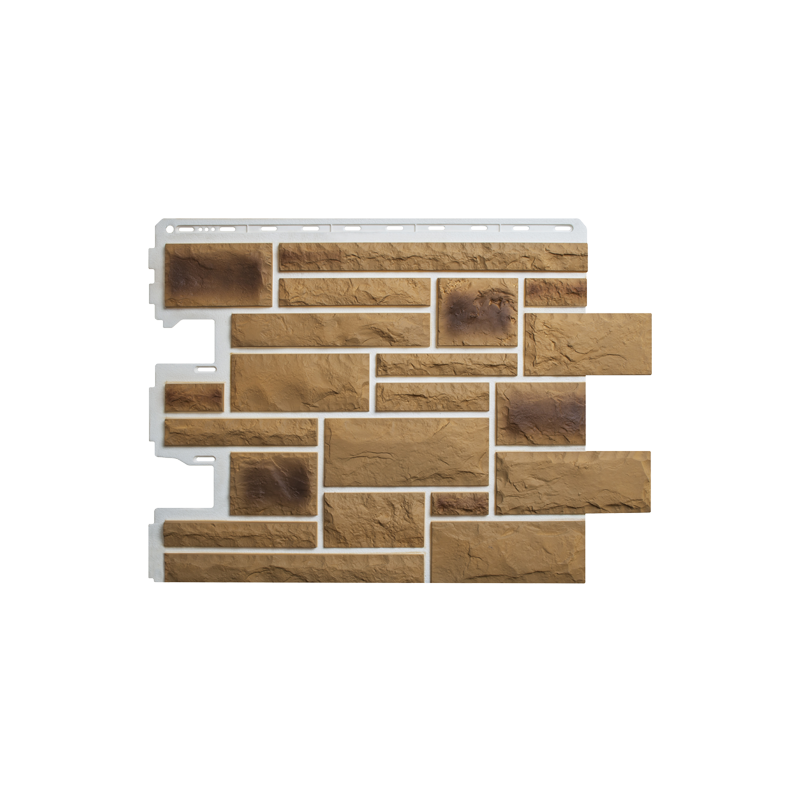 Панель изготовлена из полипропилена методом литья под давлением, имеет небольшой вес, поэтому не создает дополнительной нагрузки на несущие конструкции. Материал устойчив к грибку, плесени и коррозии. За счет ребер жесткости и увеличенной толщины (26 мм), панели устойчивы к механическим и температурным воздействиям, не деформируются. Многослойное окрашивание позволяет добиться неравномерного оттенка, подчеркивая природную текстуру натурального камня, надежно защищает от УФ-лучей, обеспечивая сохранность цвета долгие годы.