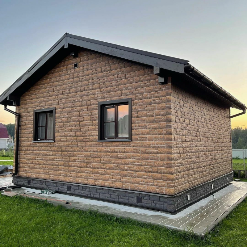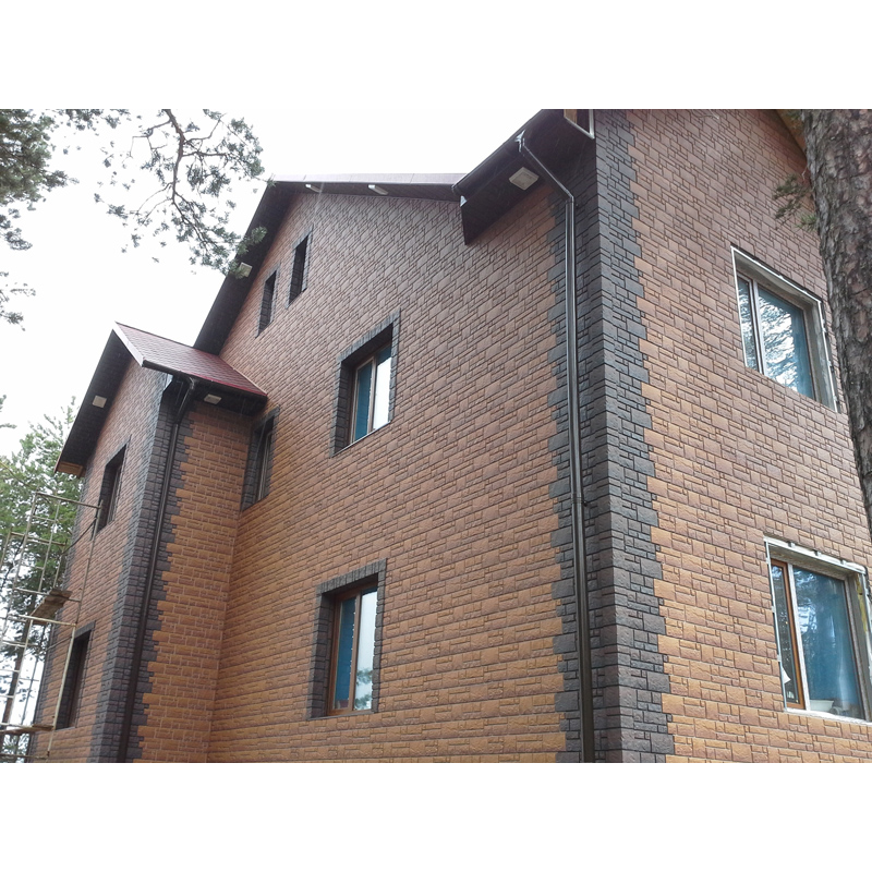 Фасадные панели могут использоваться как для оформления фасада целиком, так и для облицовки фундамента, выделения отдельных деталей.