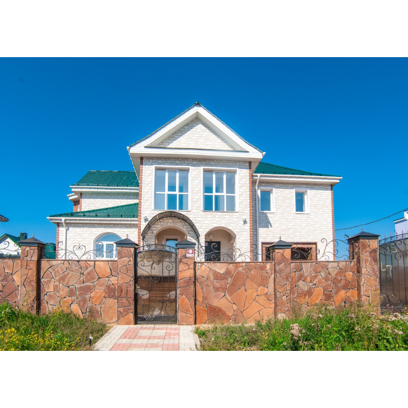 Фасадные панели могут использоваться как для оформления фасада целиком, так и для облицовки фундамента, выделения отдельных деталей.