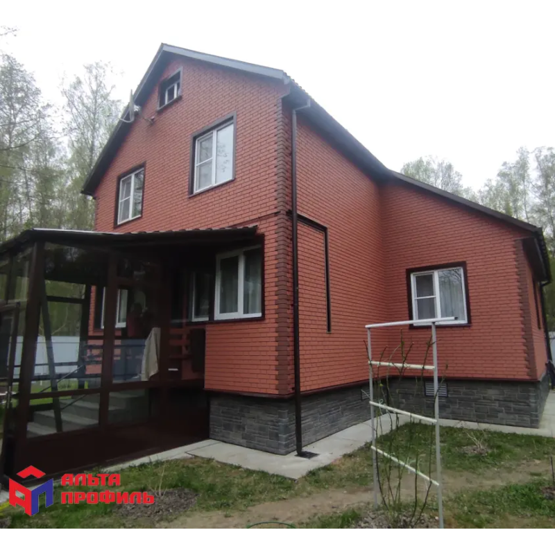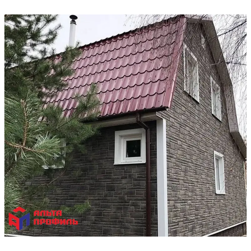 К серо-голубому сайдингу фирмы Альта профиль подошёл прекрасно по цвету.Брали на вставки и на фундамент.