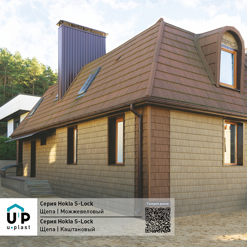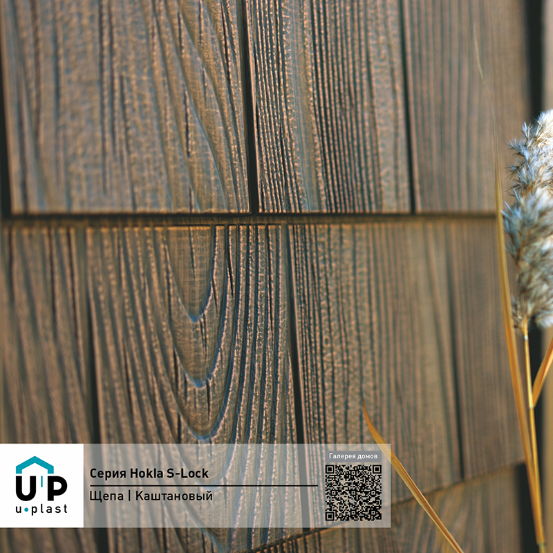 Фасадная панель Ю-Пласт Hokla S-Lock Щепа Каштан — оптимальное сочетание надежности и эстетичного вида. Материал точно имитирует вид натурального дерева: дом будет выглядеть респектабельно, при этом отделка не вызовет сложностей и прослужит долго без особых усилий с вашей стороны.