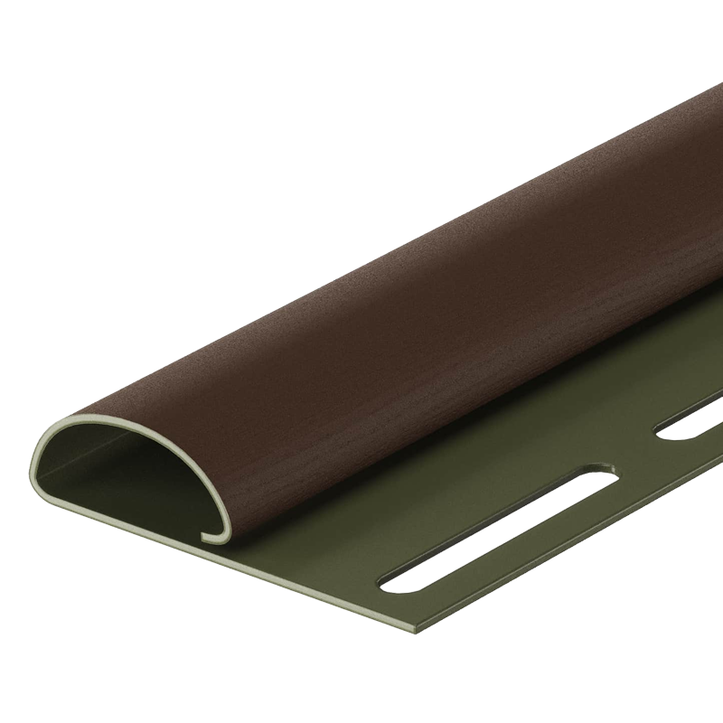 Виниловый финишный профиль универсальный от Docke длиной 3 м, цвет Каштан. Применяется для крепления обрезанного по горизонтали края панелей сайдинга, может использоваться при закреплении верхнего ряда панелей, отделке оконных проемов, монтаже ветровой доски и т. п.