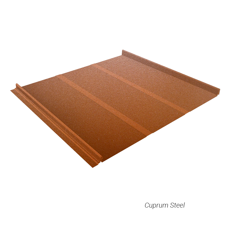 Панели изготавливаются из листовой стали толщиной, достаточной для защиты от истирания и механических воздействий — 0,5 мм. Материал устойчив к механическим нагрузкам и надежно защищен от коррозии цинкованием 265 ZA г/м2. Защитно-декоративное покрытие — Quarzit, глянцевое, PUR, толщиной 55 мкм. Колеровка заказная