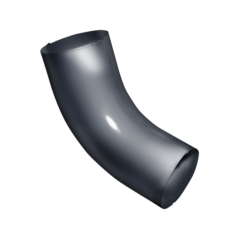 Колено трубы D90 мм 60° темно-серое RAL7024 с покрытием Granite Double от Гранд Лайн. Элемент водосточной системы, применяется для отведения водосточной трубы от выпускной воронки, расположенной у края ската кровли, к стене, а также от выступающих элементов фасада.