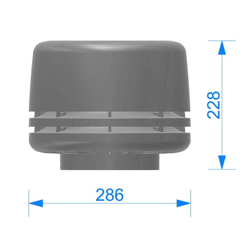 Колпак для вентвыхода канализации Ø110 мм. Устанавливается на трубу канализационного выхода, имеет декоративную функцию, сохраняя единообразный вид вентвыходов на одной кровле. Так как из фановой трубы поступает влажный теплый воздух, в условиях холодного климата это может привести к обледеневанию вентвыхода и прекращению вентиляции, поэтому в данном случае колпак используется без внутреннего наполнения. Температурный режим эксплуатации -40°…+80°C. Изготовлен из стойкого к УФ-излучению полипропилена. Крепеж в цвет изделия в комплекте