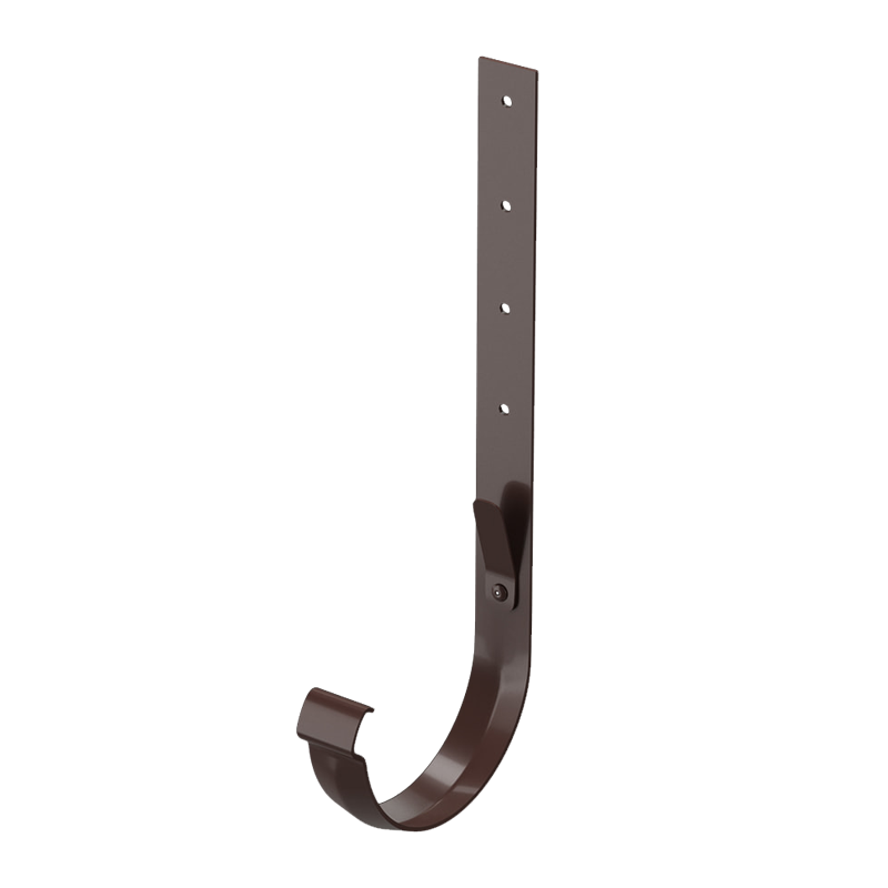 Кронштейн желоба металлический D141 мм RAL8019 Коричневый серии LUX от производителя Docke. Кронштейн используется для надежной фиксации водосточного желоба и крепиться к стропилам крыши. Устанавливаются перед монтажом кровли. Пластиковые водосточные системы Döcke представлены в трех сериях: базовая STANDARD, продвинутая PREMIUM и дизайнерская LUX. И позволяют организовать водоотвод с кровли любой сложности. Изящные конструкции и цветовая гамма водостоков украсят строение в любом архитектурном стиле. Водосток серии LUX обладает высокой пропускной способностью и подходит для больших кровель площадью 250 м² и выше. ОСОБЕННОСТИ ВОДОСТОКА LUX: – Увеличенная глубина и диаметр желоба – 141 мм – Пропускная способность желоба: 2,1 л/сек на п.м. – Диаметр трубы: 100 мм. – Пропускная способность трубы: 9,3 л/сек. – Толщина стенок: 2,2 мм. На всех соединительных элементах присутствуют пластиковые выступы — ограничители монтажа, что существенно облегчает монтаж и позволяет избежать ошибок при сборке. Фитинги для желобов снабжены резиновыми уплотнителями, которые обеспечивают эффективное и плотное соединение и придают герметичность водосточной системе. Пластиковые водостоки Деке отличаются высоким качеством и совмещают функциональность и красоту. Могут функционировать при критически низких и высоких температурах, рассчитаны на российский климат. Гарантия на отсутствие деформации под воздействием климатических факторов составляет 25 лет. Гарантия на стабильность цвета — 7 лет. Водосточная система Docke из пластика подходит для всех типов скатных кровель дач и загородных домов. Это надежное и красивое решение водостока для крыши! Всегда в наличии на нашем складе водостоки Деке в цветах Белый, Коричневый, Пломбир, Шоколад, также предлагаем водосточные системы в цветах Гранат и Графит. Купить кронштейн желоба металлический D141 мм Docke LUX RAL8019 Коричневый недорого вы можете в нашем интернет-магазине Удачная покупка. Наши менеджеры помогут с выбором и рассчитают необходимое количество элементов водостока.