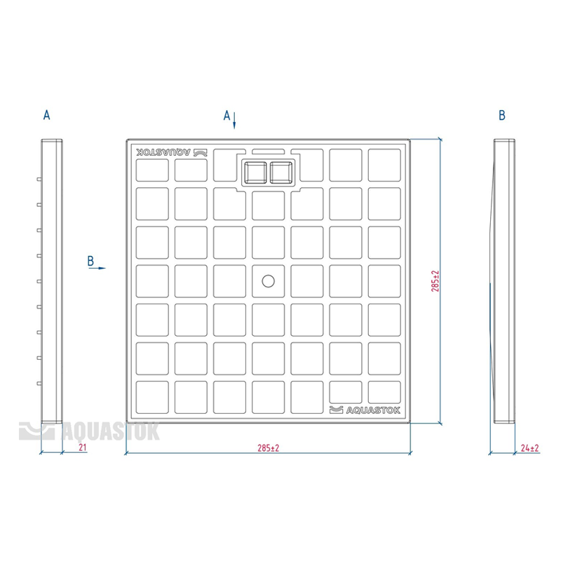 Крышка из морозостойкого пластика для дождеприемника 4300/4330 (300x300 мм). Используется как защита от попадания воды в систему водоотвода в зимний период или как стационарная крышка дренажного или ревизионного колодца. Класс нагрузки — A15 (до 1,5 т./м²).