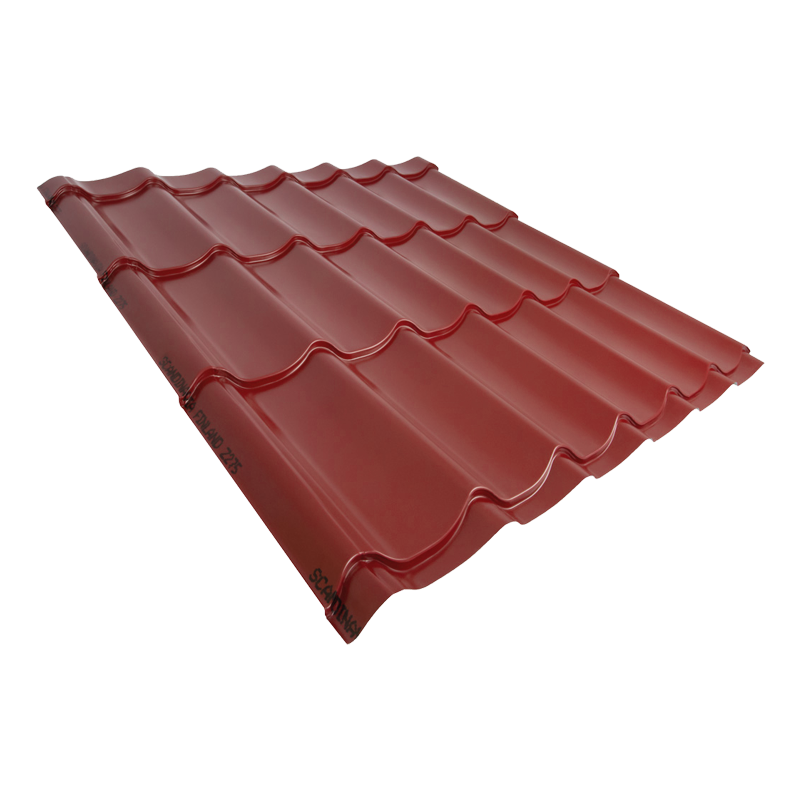 Металлочерепица Scandinavia (Скандинавия) с глянцевым покрытием Полиэстер, толщиной стали 0,5 мм. Производится из оцинкованной стали оптимальной толщины, достаточной для качественного профилирования. Слой цинка обеспечивает надежную защиту металлочерепицы от образования ржавчины и коррозии. Экономичное и универсальное покрытие Полиэстер толщиной 25 мкм устойчиво к перепадам температур и подходит для любых климатических зон. Обладает хорошей стойкостью цвета. Хорошо зарекомендовало себя благодаря своим характеристикам и невысокой стоимости. Популярный профиль в форме бегущей волны является классикой и идеально гармонирует с любым архитектурным стилем дома. Металлическая черепица Scandinavia выпускается в нескольких вариантах, с длиной листа 470, 1170, 2220 и 3620 мм. Удобные размеры позволяют использовать металлочерепицу на кровлях любой площади и конфигурации, сокращают количество обрезков кровельного материала, а также ускоряют и упрощают монтаж. Металлочерепица Скандинавия представлена в наиболее распространенных цветах, используемые для кровли. Оттенки из палитры RR отличаются природным скандинавским спокойствием. Традиционная красная крыша — это неустаревающая классика. Металлочерепица в цвете RR28 Красный идеально сочетаться с кремовыми, бледно желтыми, молочными и персиковыми оттенками фасада. Особенно колоритно красная кровля выглядит в тандеме с.белыми фасадными материалами. Купить металлочерепицу Скандинавия 0,5 мм Полиэстер в цвете RR28 с длиной листа 3620 мм по доступной цене вы можете в нашем интернет-магазине Удачная покупка. Наши менеджеры произведут расчет кровельного материала и необходимых комплектующих.