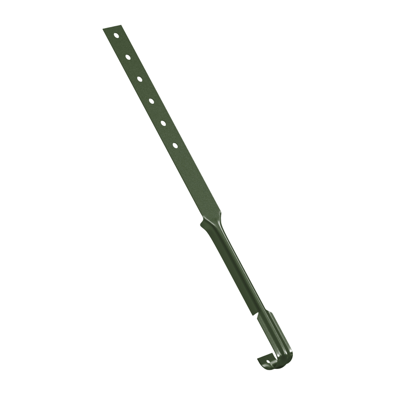 Поддержка водосточного желоба D125 мм RR11 Темно-оливковая с покрытием Полиуретан (PUR) от производителя Аквасистем. Обеспечивает дополнительную поддержку желоба в сложных местах кровельных систем, в ендовах, или при крутых уклонах кровли, где возможен лавинообразный сход снега. Может устанавливаться на всех видах кровли.