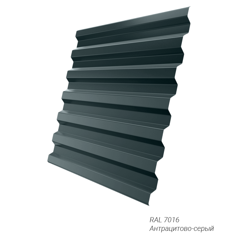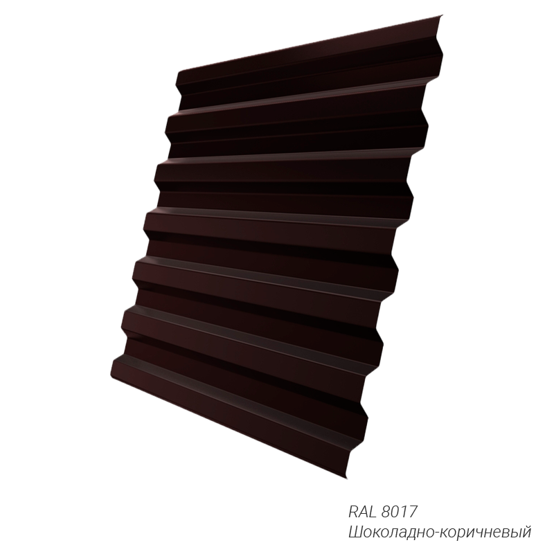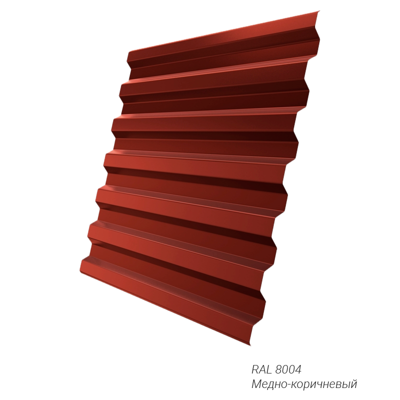 Профнастил имеет профиль C21R (высотой 21 мм). Толщина стали составляет 0,45 мм. Колеровка — заказная. Можно подобрать идеальный цвет для любого проекта.