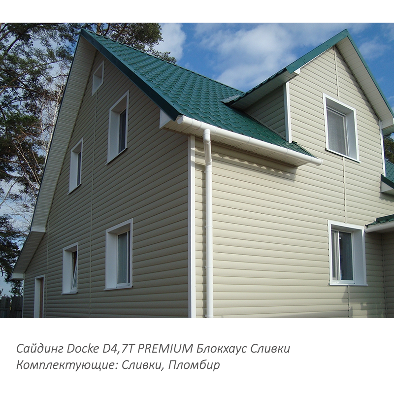 Виниловый сайдинг Docke коллекции PREMIUM D4.7T Сливки – один из самых популярных видов отделочных материалов. Панели ПВХ в форме блок-хаус обладают множеством достоинств. С такой облицовкой обычный каркасный дом практически невозможно отличить от добротного бревенчатого сруба.