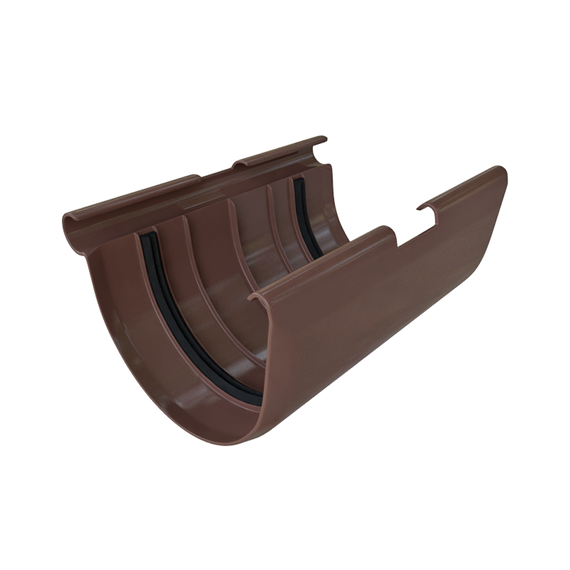Соединитель желоба ПВХ D125 мм коричневый серии Элит от Альта-Профиль. Устанавливается в местах соединения водосточных желобов, герметизирует стыки и придает дополнительную прочность водостоку. Пластиковый водосток круглого сечения D125/95 серии Элит от Альта-Профиль. Водосточная система Альта-Профиль серии Элит имеет увеличенные глубину желоба и диаметр трубы, что обеспечивает высокую пропускную способность системы. Водосток размерностью 125/95 подходит для больших зданий со сложной формой крыши, а также идеален для регионов с повышенным уровнем осадков. Основные элементы водостока толщиной стенки – 1,6 мм, изготовлены из поливинилхлорида (ПВХ) с добавлением аддитивов, усиливающих прочность и ударостойкость системы. Материал трудновоспламеняемый и не поддерживает горение. Инновационная технология окрашивания Cool Colour надежно защищает от солнечных лучей, значительно уменьшает нагрев водосточной системы. Водосток не выгорает, не подвержен коррозии и гниению, устойчив к воздействию агрессивных сред и перепадам температур. ДОСТОИНСТВА ВОДОСТОКА ЭЛИТ: – Высокая пропускная способность, за счет увеличенного диаметра водосточного желоба –125 мм – Большая толщина стенок желоба – 1,6 мм (по сравнению с конкурентами) обеспечивает высокую механическую прочность водостока и позволяет выдерживать большие снеговые нагрузки – Элементы водосточной системы имеют продольные ребра жесткости, которые увеличивают прочность водостока, улучшают характеристики потока и уменьшают риск образования засоров – Регулируемый угол желоба позволяет менять угол соединения двух желобов от 120 до 145 градусов, в зависимости от конструкции здания – Резиновые уплотнители для соединительных элементов желоба обеспечивают герметичность системы Водосток ПВХ Альта-Профиль герметичен, надежен и прост в монтаже. Водосток служит для отвода талых и дождевых вод с кровли, защищает фундамент и отмостку от разрушающего действия осадков, предотвращает подтопление подвалов, продлевает срок службы фасадных материалов и помогает сохранить привлекательный вид фасада, Купить соединитель желоба ПВХ D125 мм коричневый серии Элит от производителя Альта-Профиль недорого вы можете в нашем интернет-магазине Удачная покупка. Наши менеджеры помогут с выбором и рассчитают необходимое количество элементов водостока.