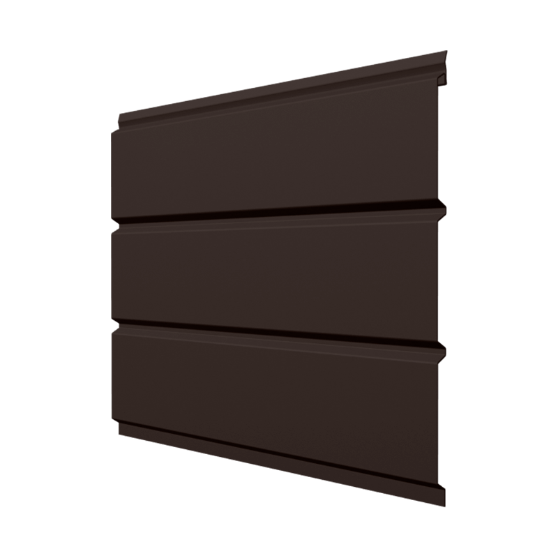 Металлический сплошной софит с покрытием Полиэстер (PE) от Аквасистем, толщиной стали 0,45 мм, цвет RR32 Темно-коричневый. Длина панели софита 2,4 м. Софиты предназначены для декоративной отделки свесов кровли, фронтонов, потолков открытых террас, беседок, веранд, крылец. Сплошные софиты (без перфорации) подходят для подшивки фронтонных свесов, а также могут применяться для обшивки всего фасада. Для обеспечения максимально удобных условий эксплуатации, при монтаже сочетают перфорированные и частично перфорированные софиты. Система софитов из оцинкованной стали AquaSystem: • 3 типа профилей: с полной перфорацией, с центральной перфорацией, сплошной (без перфорации) • 4 покрытия: Printech (под дерево), Полиэстер (глянцевое), GreenCoat Pural BT(глянцевое), GreenCoat Pural Matt BT(матовое) • 2 вида поверхности: гладкая и фактурная (имитирующая дерево) Полимерное глянцевое покрытие Полиэстер(PE) толщиной 25 мкм на основе полиэфирной краски с защитным слоем цинка (275 гр\м2) обладает хорошей стойкостью цвета, обеспечивает надежную защиту от образования ржавчины, не боится влаги и выдерживает термическое воздействие до +80°C. Гарантированный срок эксплуатации металлических софитов Аквасистем с покрытием Полиэстер (PE) - 30 лет. Преимущества металлических софитов: — Пожароустойчивы — Высокая устойчивость к деформациям — Выдерживают существенные перепады температур — Большой выбор цветов и покрытий — Длительный срок службы, Купить металлический софит без перфорации Аквасистем Полиэстер (PE) RR32 Темно-коричневый по доступной цене вы можете в нашем интернет-магазине Удачная покупка. Наши менеджеры рассчитают необходимое количество материала и помогут с выбором комплектующих.