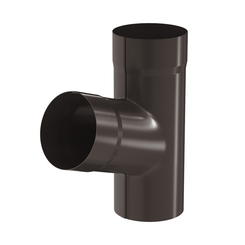Тройник трубы 72° D90 мм RR32 Темно-коричневый с покрытием Полиуретан (PUR) от производителя Аквасистем. Применяется для соединения двух водосточных труб в один общий сток.