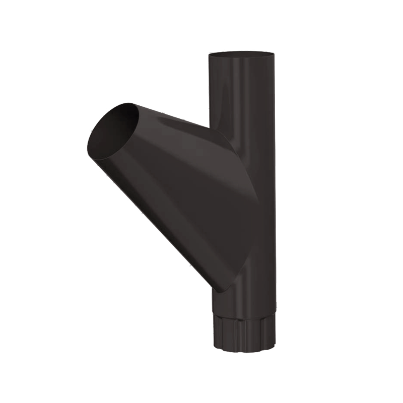 Тройник трубы D100 мм коричневый RR32 с покрытием Пластизол серии МП Престиж от Металл Профиль. Применяется для соединения двух водосточных труб в один общий сток.