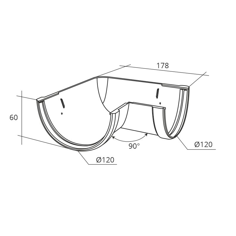 Угол желоба универсальный 90° ПВХ D120 мм белый от Гранд Лайн. Предназначен для соединения водосточных желобов под углом 90 градусов, для смены направления движения воды в стоке. Обеспечивает непрерывность линии водостока. Устанавливается на внутренних и наружных углах здания.