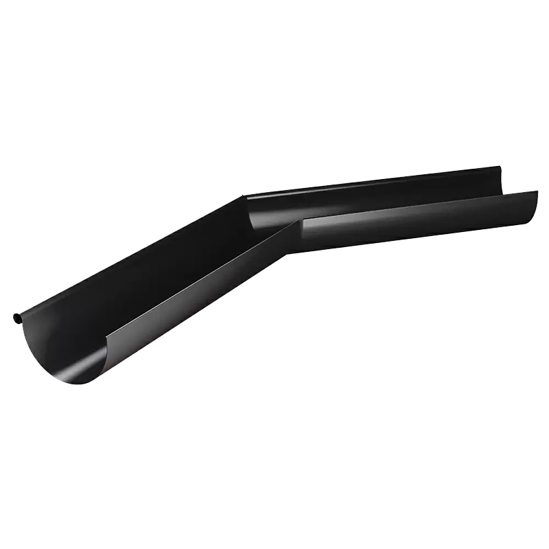 Угол желоба наружный D125 мм 135° черный RAL9005 с покрытием PURMAN серии МП Престиж от Металл Профиль. Предназначен для соединения водосточных желобов под углом 135 градусов, для смены направления движения воды в стоке. Обеспечивает непрерывность линии водостока. Устанавливается на наружных/выступающих углах здания.