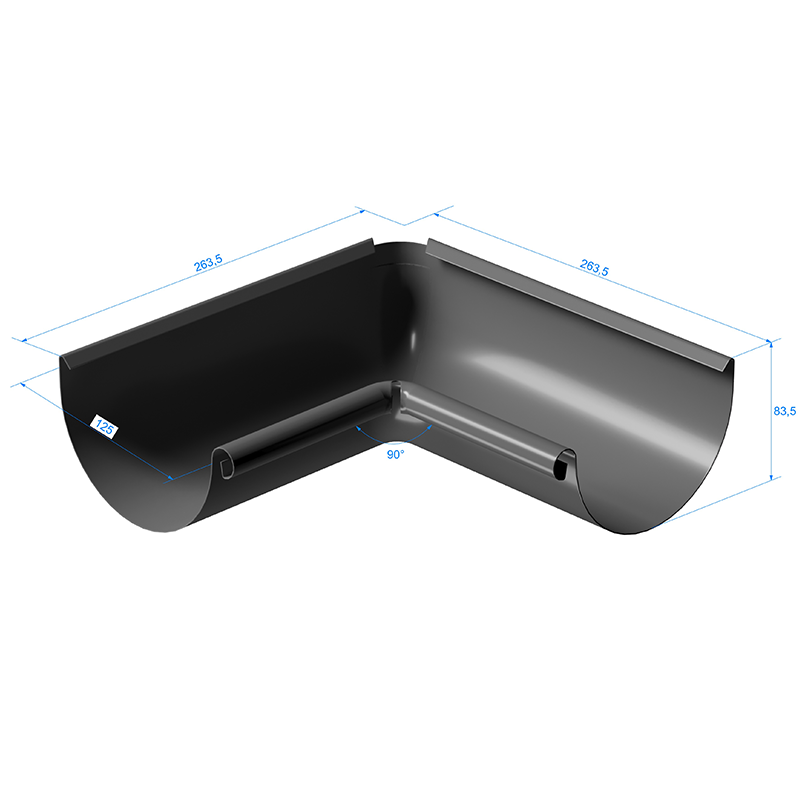 Угол желоба внутренний 90° Docke STAL PREMIUM D125 RAL8017 Каштан