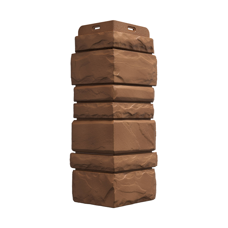 Внешний угол для фасадной панели под колотый слоистый песчаник с переливающейся текстурой поверхности Docke STERN длиной 427 мм. Предназначен для оформления наружных углов и отдельных архитектурных элементов фасада. Скрывает места угловых стыков фасадных панелей, защищает от проникновения влаги. Производятся углы из полипропилена и идентичны по структуре и цвету фасадным панелям Docke STERN.