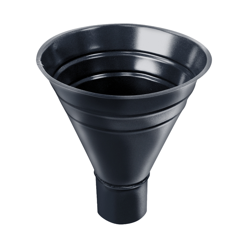 Воронка водосборная D125/90 мм темно-серая RAL7024 с покрытием Granite Double от Гранд Лайн. Элемент водосточной системы, применяется для сбора воды со сложных форм крыш, фальцевых кровель, в тех случаях, когда сток не организован посредством желоба.