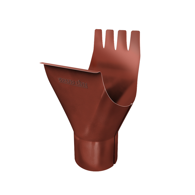 Воронка выпускная D125/90 мм терракотовая RAL8004 с покрытием Granite Double от Гранд Лайн. Элемент водосточной системы, устанавливается в водосточный желоб и служит для отвода воды из желобов в водосточную трубу. Металлический водосток круглого сечения D125/90 с покрытием Granite Double от Гранд Лайн. Водосточная система изготовлена из холоднокатаной горячеоцинкованной стали толщиной от 0,5 мм и произведена по ведущим европейским технологиям. Все элементы водостока имеют покрытие на основе полиуретана с внешней и внутренней стороны, что значительно повышает долговечность системы. Покрытие Granite отличается повышенной стойкостью к УФ-лучам, агрессивным химическим веществам, механическим повреждениям и коррозии, превосходит по своим параметрам покрытия из полиэстера и пластизола. Водосток обладает высокой цветостойкостью, не выгорает. Устойчив к большим температурным перепадам ( -60 до +120°C). Водосточная система Гранд Лайн D125/90 обладает глубоким желобом, что увеличивает ее пропускную способность, предотвращает перелив воды через край, а также делает ее менее засоряемой. Водосток отлично справляется с отводом осадков с кровли площадью до 100 м². Водосток Гранд Лайн служит для организации стока осадков с поверхности кровли и отвода их на грунт или систему ливневой канализации. При организованном стоке воды сохраняется привлекательный вид фасада, а фундамент защищен от преждевременного разрушения. Купить воронку выпускную D125/90 мм терракотовую RAL8004 с покрытием Granite Double от производителя Гранд Лайн по низкой цене вы можете в нашем интернет-магазине Удачная покупка. Наши менеджеры помогут с выбором и рассчитают необходимое количество элементов водостока.