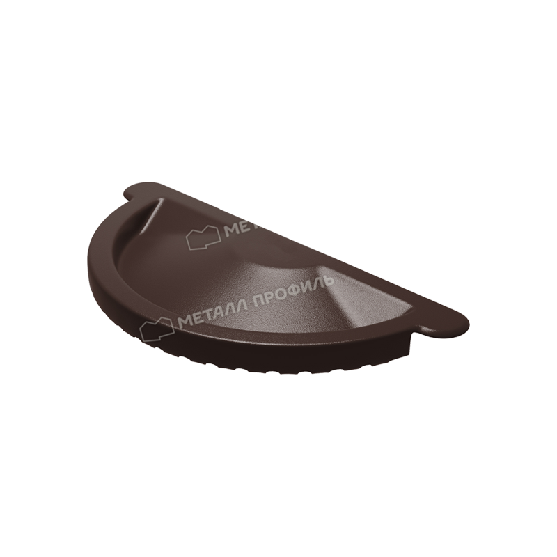 Заглушка желоба D125 мм коричневая RAL8017 серии Гранд Систем от Металл Профиль. Предназначена для закрытия торцов водосточных желобов.