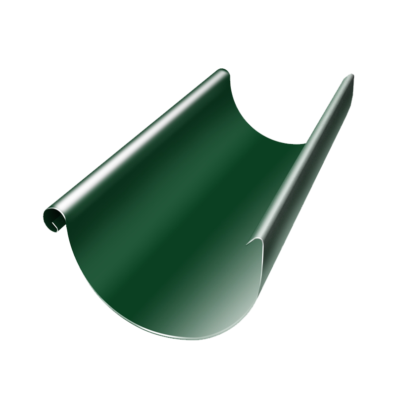 Желоб водосточный D125 мм длиной 3 м зеленый RAL6005 с покрытием Granite Double от Гранд Лайн. Является основным элементом водосточной системы, крепиться под скат кровли. Собирает и направляет дождевую воду с крыши строения в водосточную трубу.